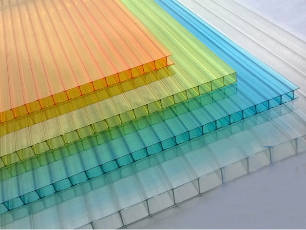 4.PC板颜色:耐力板和阳光板主要原料是聚碳酸酯,各种颜色是在生产过程中,添加色母粒。使产品拥有各种颜色,一般客户选择的产品,有透明、湖蓝、宝蓝、草绿、乳白、茶色等,也可根据客户提供的色样,色板定做生产。