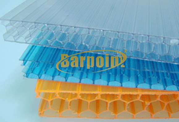 PC蜂窝板为聚碳酸酯为主要原料生产制造。阳光板在80年代中期迅猛进入建筑装饰材料市场。比夹胶玻璃、夹丝玻璃、钢化玻璃、中空玻璃更具轻质、耐候、超强、阻燃、隔声的优